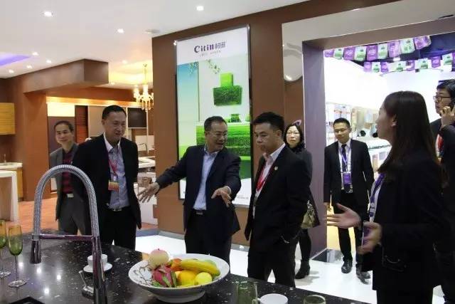 在工作人员的引领下,领导们首先参观了官方版科技馆,在科技馆内,工作人员逐一为领导们介绍了官方版的企业文化、发展历程、获得荣誉及2016年官方版厨卫重金打造的“智慧厨房“等。