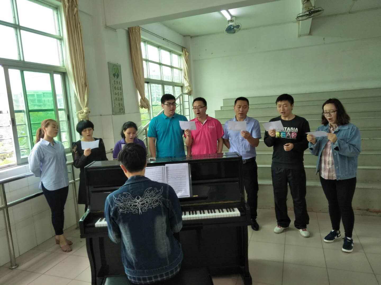 认真专注地歌唱