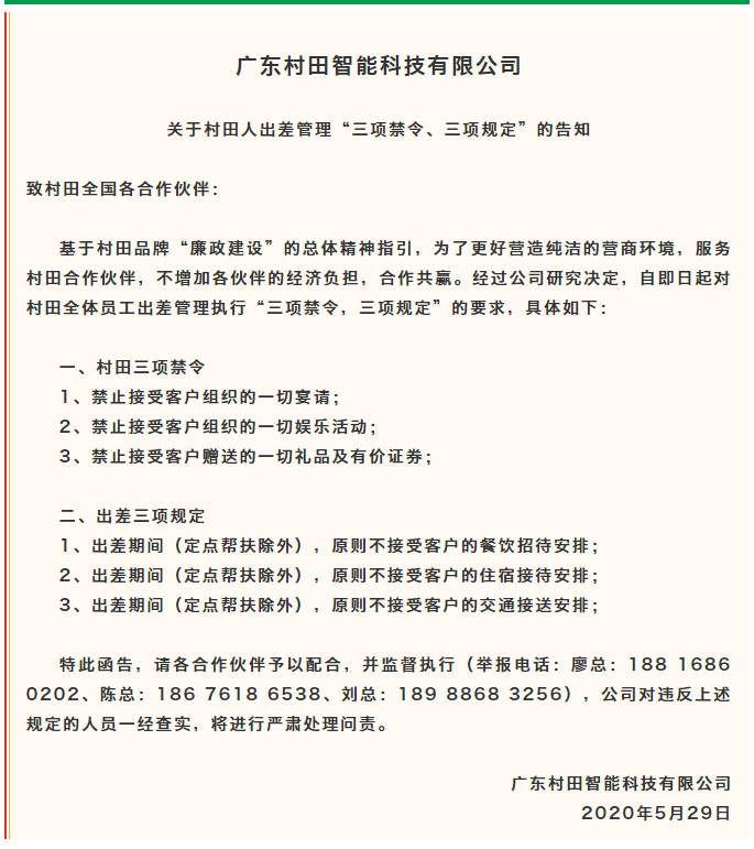 【官方版厨卫】致官方版全国各合作伙伴“三项禁令、三项规定”告知函