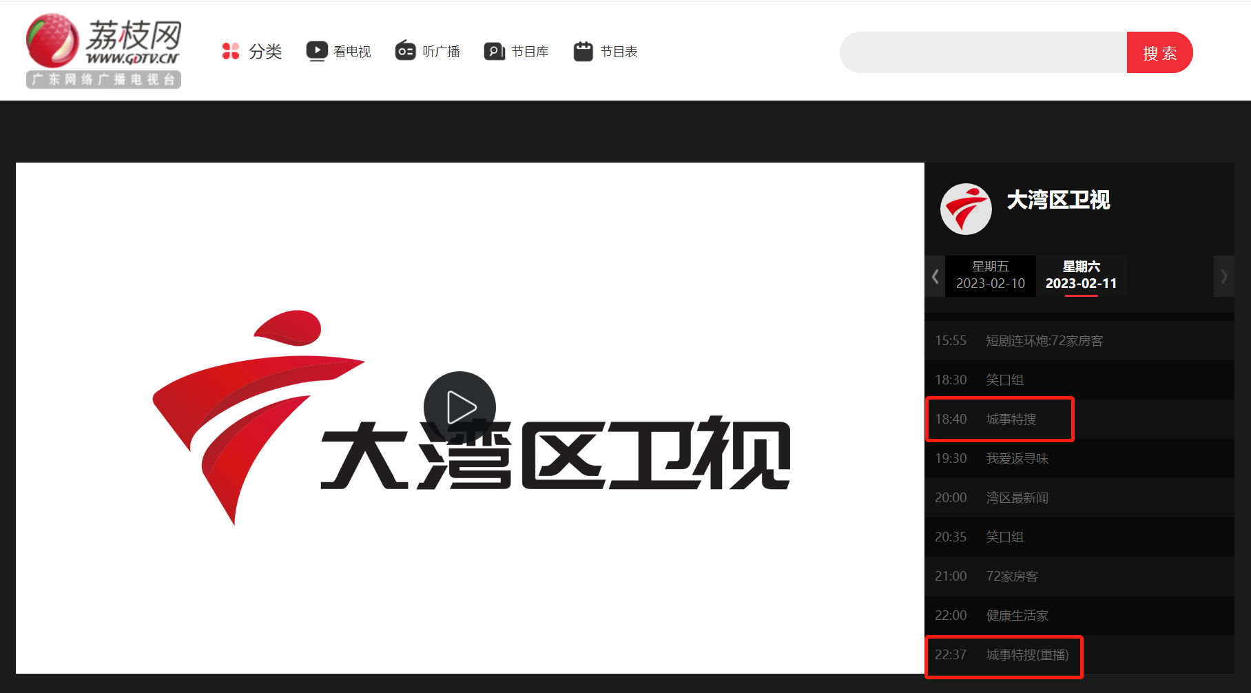 播出频道1:大湾区卫视(广东、北京、广西、海南版)